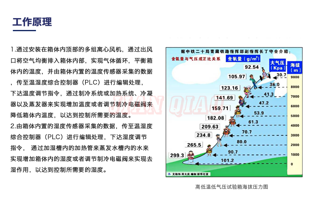 用途:高低溫低氣壓試驗箱:主要用于試驗工件在低氣壓、高溫低溫、凝露、結霜單項或同時作用下的環境適應性與可靠性試驗,并或同時對試件通電進行電氣性能參數的測量。